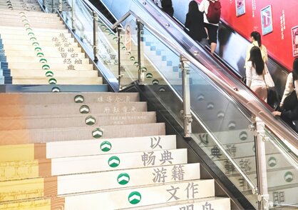 | 南寧地鐵廣告投放案例圖-梯間貼 | 南寧地鐵梯間貼廣告投放 |