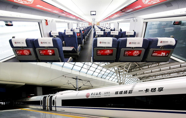 高鐵冠名廣告投放數(shù)量:1列起投放,不單節(jié)車廂售賣。