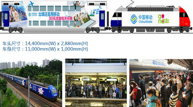 媒體形式:車(chē)身貼 車(chē)型:雙層 媒體格式: 車(chē)頭:14,400(w)x2,880(h)mm 車(chē)身:11,000(w)x1,000(h)mm 媒體數(shù)量:24個(gè)/列車(chē) 媒體報(bào)價(jià):88萬(wàn)元/4周/列 |