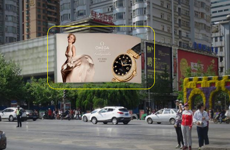 媒體位置:昆明交三橋天元商廈 媒體形式:LED大屏 可視面積:38.4m(寬)×8.96m(高)=345m2 亮屏時間:07:00-24:00