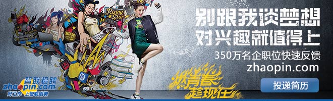 作為老牌勁旅,智聯(lián)招聘自然不會(huì)錯(cuò)過(guò)這場(chǎng)大戰(zhàn),面對(duì)突然雄起的一大波對(duì)手,他們應(yīng)該也要菊花一緊了。今年的廣告,智聯(lián)押寶于“青春”二字,難道接下來(lái)還要與中華英才網(wǎng)大打出手嗎?急,在線等~智聯(lián)的強(qiáng)大應(yīng)該不只是青春二字可以概括的,雖然“青春”二字很賣錢。況且文案是神馬鬼?知道戰(zhàn)況有多激烈嗎?希望在下一季看到智聯(lián)廣告用海量白領(lǐng)職位、精準(zhǔn)職位推薦、職場(chǎng)教育培訓(xùn)、線下招聘渠道等全方位優(yōu)勢(shì)來(lái)服眾。