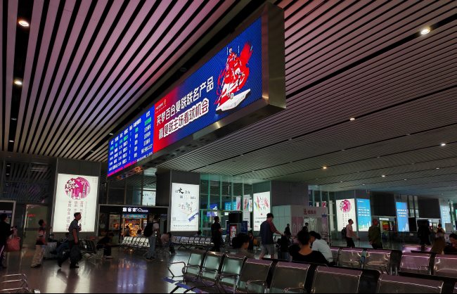 深圳坪山高鐵站候車大廳柱面燈箱廣告投放,坪山站大屏廣告