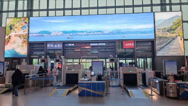臺(tái)州西站出發(fā)進(jìn)站安檢口LED刷屏機(jī)廣告