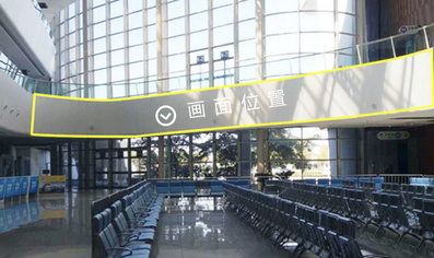 媒體位置:大廈內(nèi)三號(hào)門(mén)側(cè)大理石橫幅(三號(hào)門(mén)入口處/西側(cè)旅客休息區(qū))