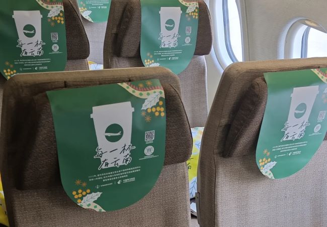 東方航空飛機(jī)客艙內(nèi)座椅頭枕巾廣告